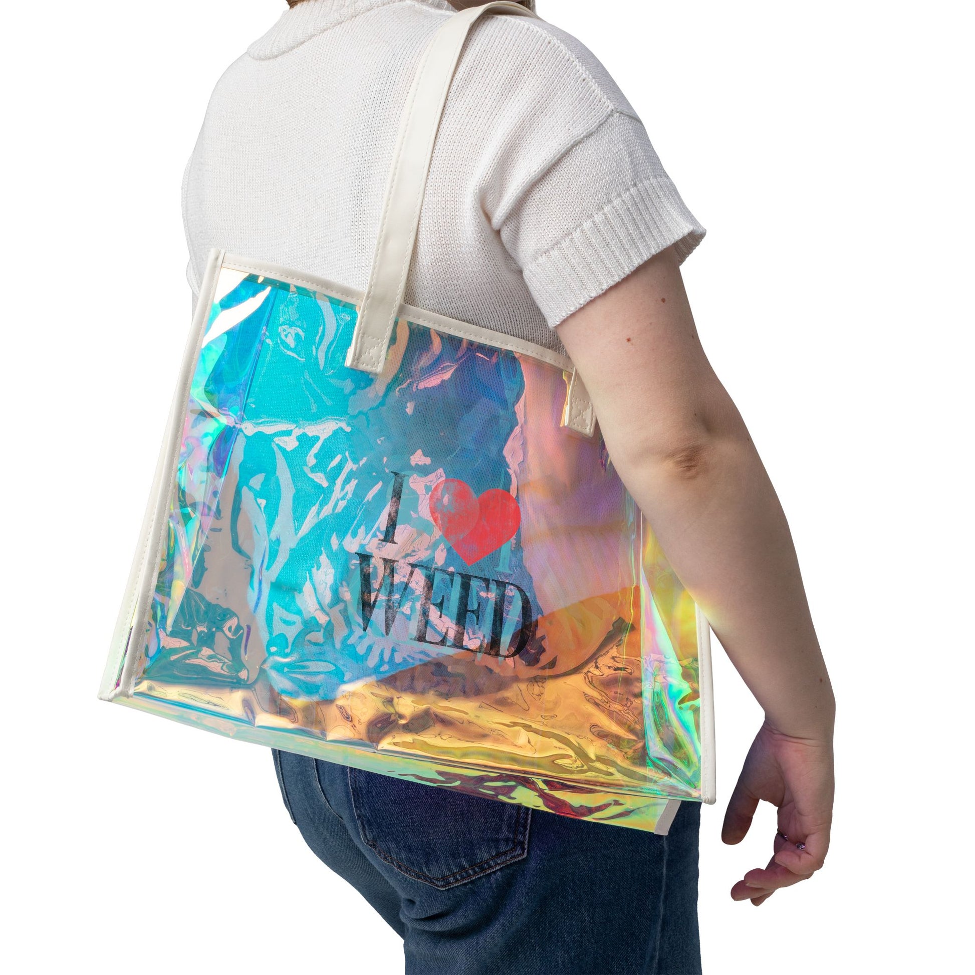 Holographic Beach Tote Bag — I ♥ WEED Clear Carryall